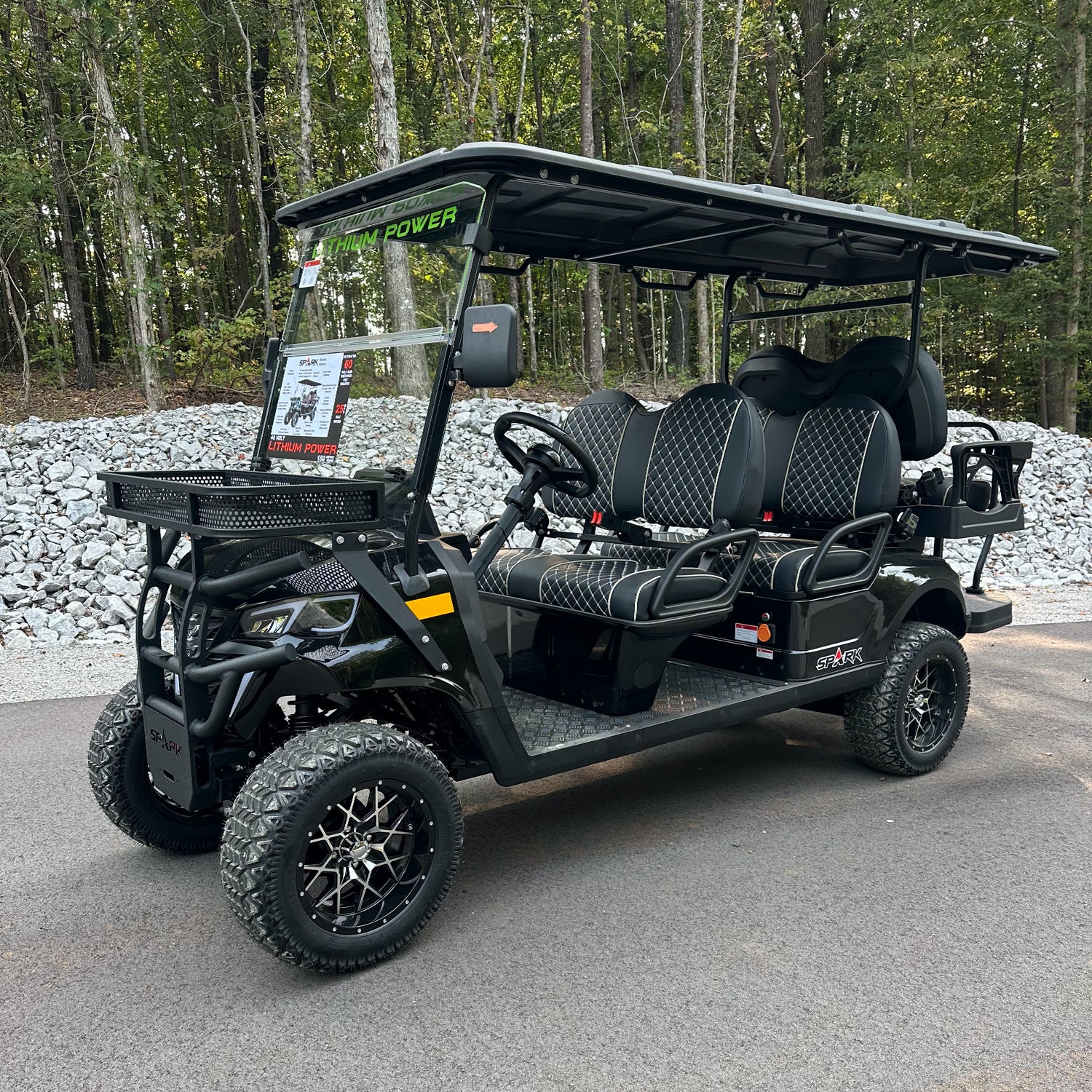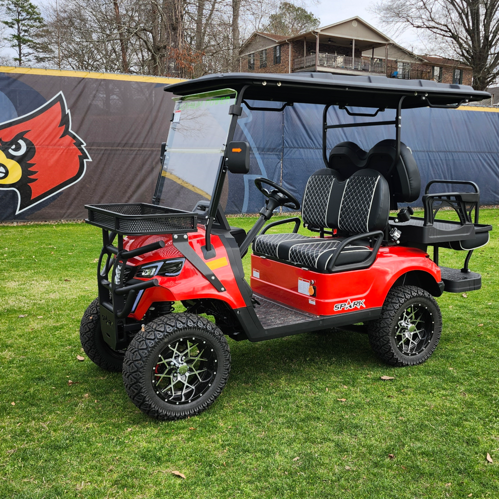 The standard Spark model. 4 riders at once, heavy duty brush guard bumper with integrated storage basket, over sized all terrain tires, custom wheels, and much, much more.