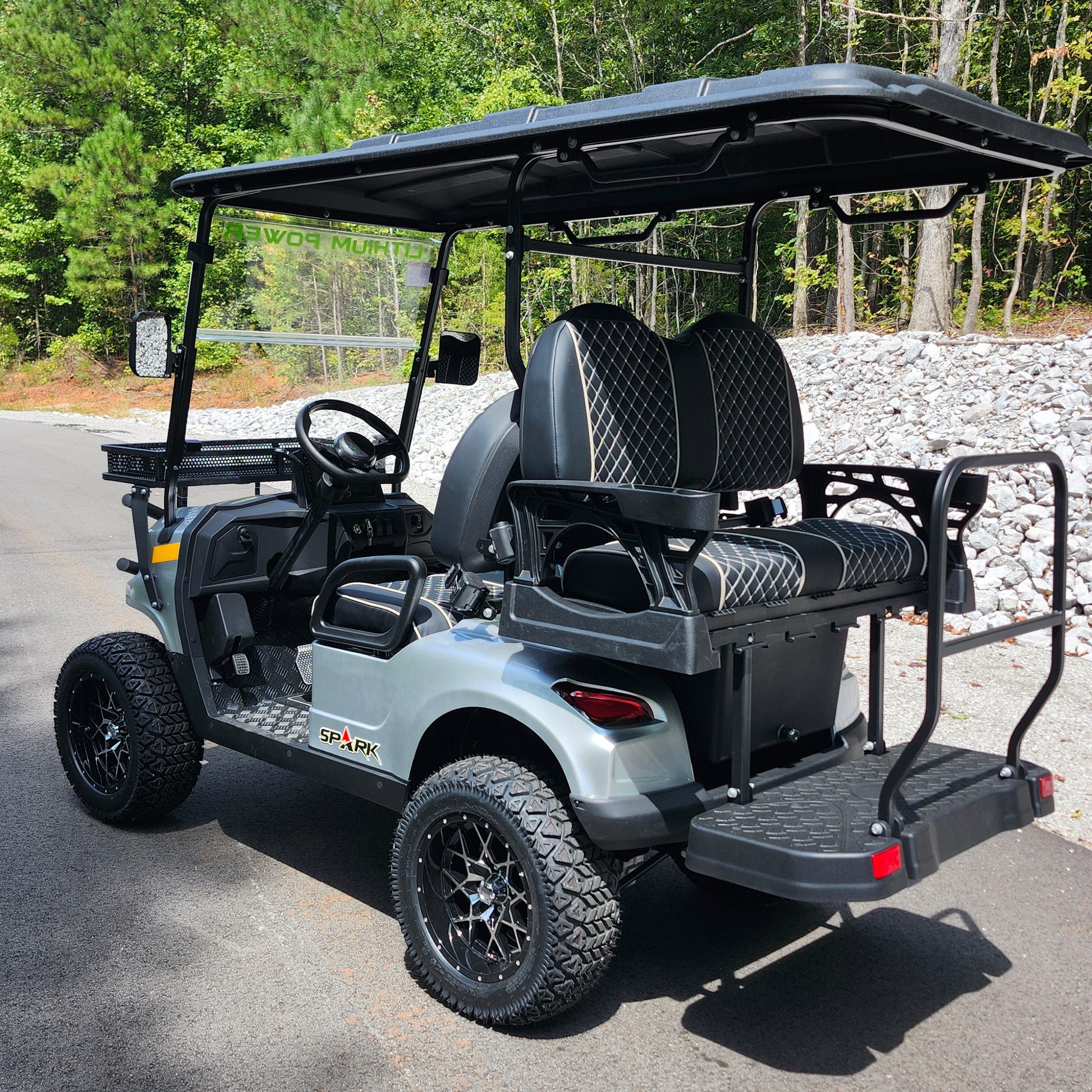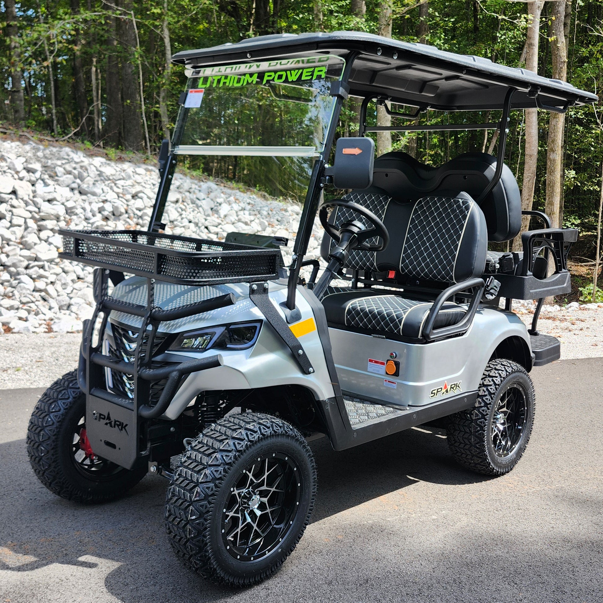 The Spark 4 Seat Golf Cart is the perfect companion for hunting, golfing, farming, or a day at the beach. Powered by a 48v lithium iron battery and a 5000 Watt Ac Electric motor, this cart ensures a powerful and efficient ride. So why settle for an ordinary ride when you can experience the best with Spark?