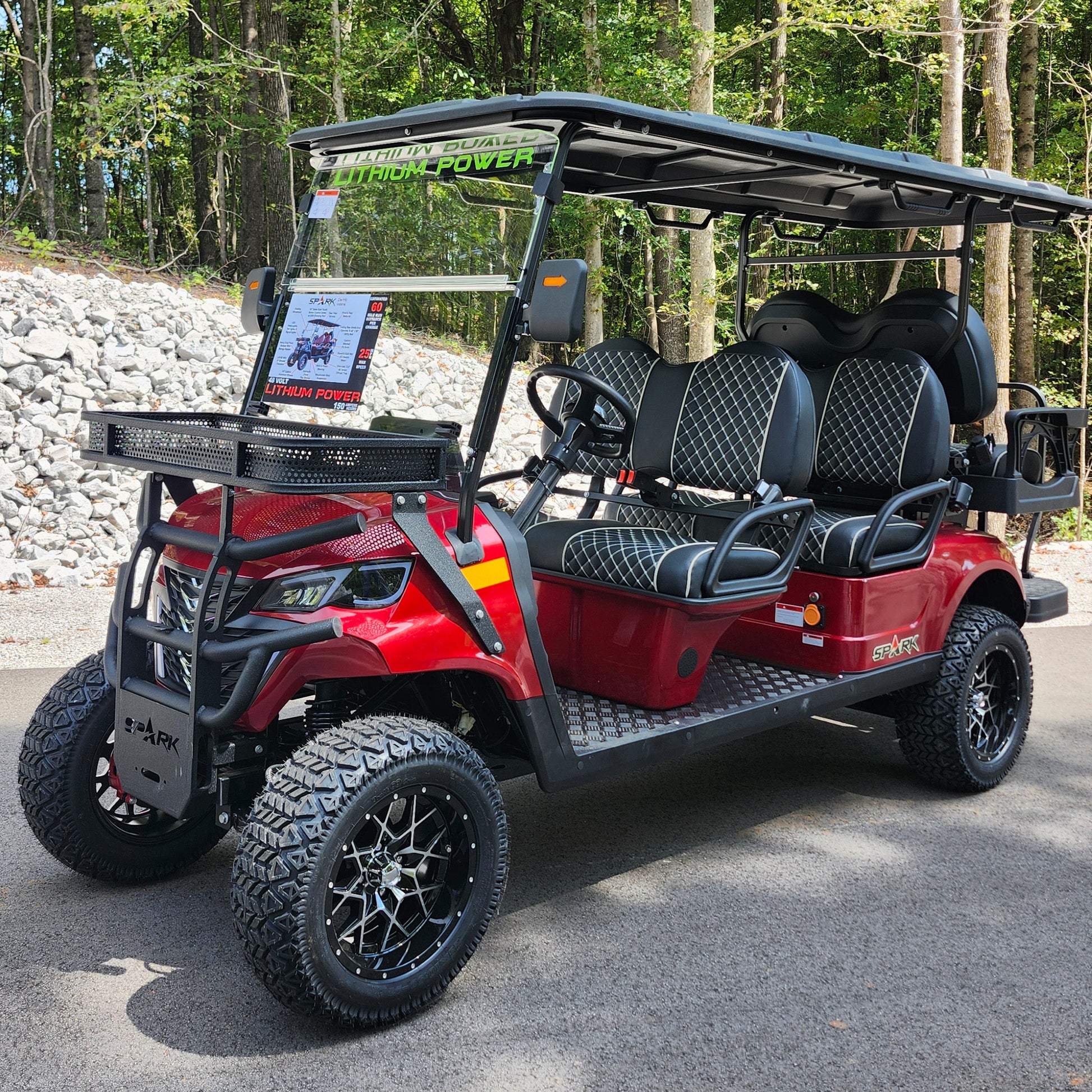 Powered by a 48v lithium iron battery and a 5000 Watt Ac Electric motor, this cart ensures a powerful and efficient ride. So why settle for an ordinary ride when you can experience the best with Spark?